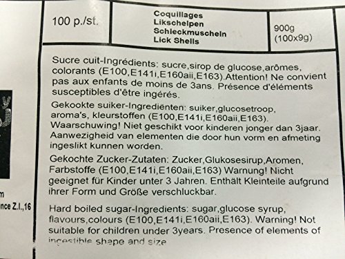 Zutaten:Zucker, Glukosesirup, Aromen , Farbstoffe (E160aii ,E163,E100,E141)